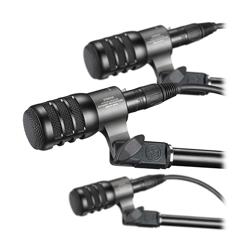 - Pack includes three ATM230 hypercardioid dynamic instrument microphones, three AT8665 drum mounts and three soft, protective pouches