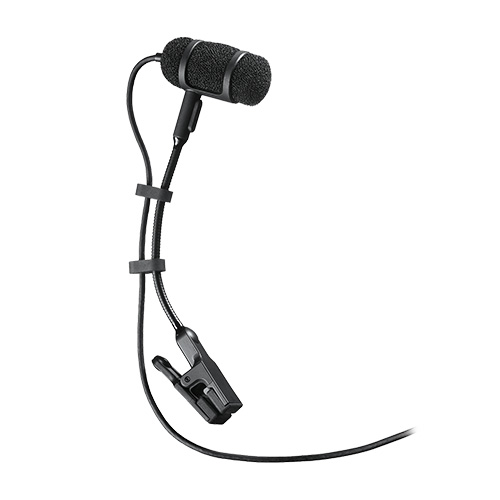 Please see the updated ATM350a Instrument Microphone Systems. Terminated with locking 4-pin connector for A-T UniPak® body-pack wireless transmitters. 55″ (1.4 m) cable. Includes AT8418 instrument mount for brass, reeds, drums, etc. See ATM350.