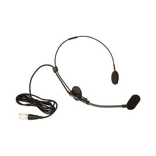 ATM73a Cardioid Condenser Headworn Microphone, less power module. 55” (1.4 m) permanently attached miniature cable terminated with a locking 4-pin connector for use with Audio-Technica cW-style body-pack transmitters. Includes windscreens. See ATM73a.