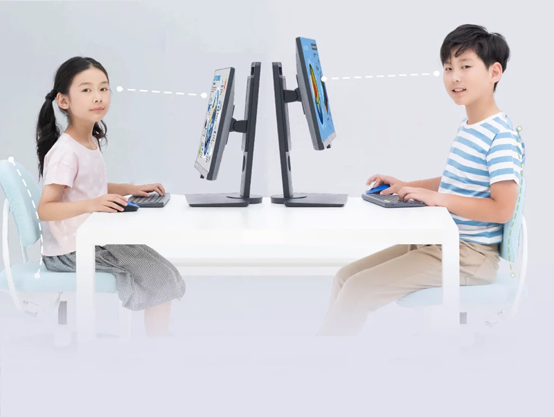 หน้าจอที่ปรับระดับความสูงได้ ช่วยให้สมาชิกในครอบครัวเลือกใช้มุมมองที่ดีที่สุดสำหรับการเรียนออนไลน์หรือทำงานอย่างสะดวกสบาย โดยสามารถใช้งานร่วมกันได้แค่ปรับการตั้งค่าตามความต้องการ เช่น ความสูง องศาการเอียงหรือแม้แต่การหมุนหน้าจอ ทั้งพี่และน้องสามารถปรับความสูงของจอภาพและมุมมองได้อย่างง่ายดายเมื่อต้องสลับกันใช้งานจอภาพ