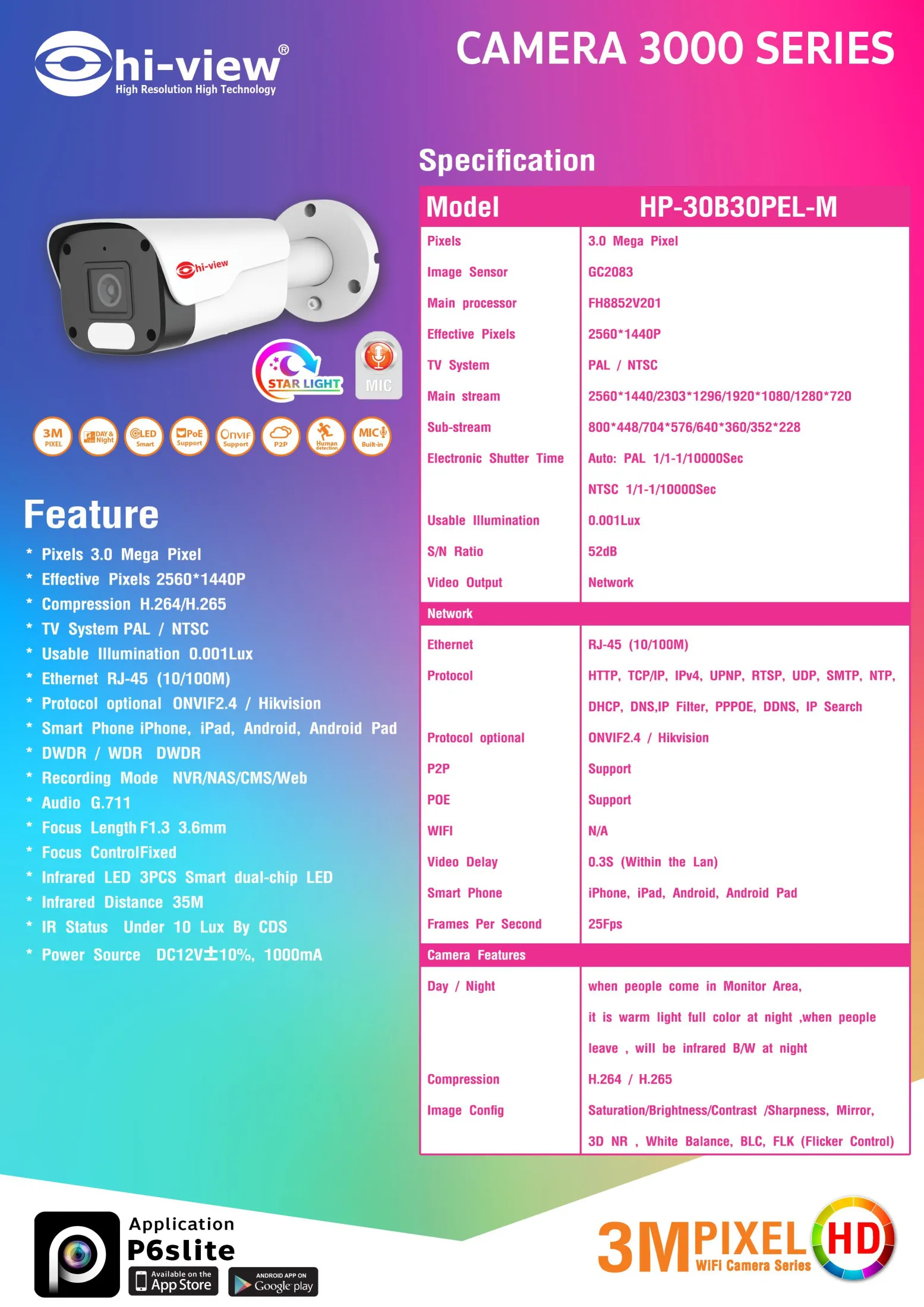 กล้องวงจรปิด IP Bullet ยี่ห้อ Hi – View รุ่น HP-97B60PEL-M