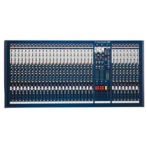 The Soundcraft LX7 II series of professional analog consoles improves upon an impressive feature set, suited to meet the demands of professional recording and live sound engineers. The LX7 II series is available in 16, 24 and 32 input configurations. Every input features balanced 1/4″ phone line level inputs, direct outputs are featured on the first 32 channels for recording and monitoring applications.