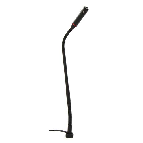 This double-gooseneck cardioid condenser microphone with integral power module and 5/8″-27 adapter-mount is ideal for boardroom, school, government, house of worship, and other installed applications. Featuring a wide-range condenser element with low-mass diaphragm for superior performance, the microphone’s self-contained electronics eliminate need for external power modules. The 9.8′ (3.0 m) permanently attached cable is terminated with a 3-pin XLRM connector.