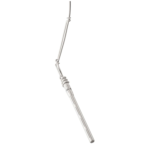 The U853PMWU UniLine condenser hanging microphone features Audio-Technica’s UniLine line-cardioid element and comes equipped with a wall/ceiling plate power module for permanent installation in a standard, single-gang electrical box. The phantom-powered microphone is equipped with UniGuard innovations that offer unsurpassed immunity from radio frequency interference. It accepts interchangeable elements, available in cardioid, hypercardioid, omnidirectional and UniLine line cardioid polar patterns. Its 80 Hz low-cut UniSteep filter reduces pickup of low-frequency ambient noise.