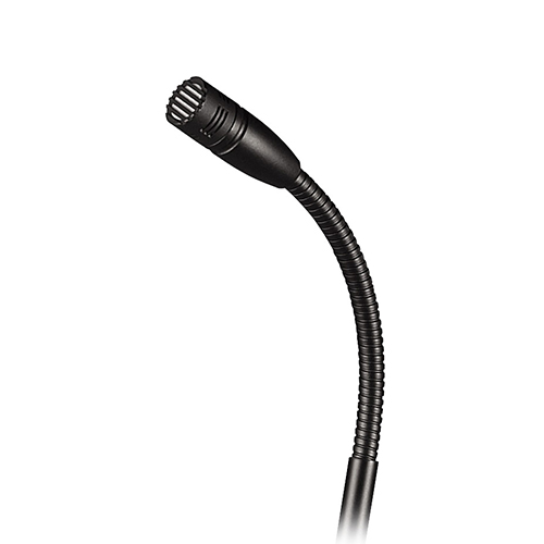 Ideal for conference centers, boardrooms, courtrooms, houses of worship, and other installed applications, the U857Q is designed to plug directly into a panel- or desk-mounted XLRF-type connector. Offering unsurpassed immunity from radio frequency interference thanks to Audio-Technica’s UniGuard® innovations, this quick-mount microphone features an ultra-flexible, small-diameter gooseneck and accepts interchangeable elements – omnidirectional (360°), cardioid (120°), hypercardioid (100°), and UniLine® (90°) – available separately. Equipped with self-contained electronics, the phantom-powered microphone also offers an 80 Hz low-cut UniSteep® filter that reduces pickup of low-frequency ambient noise.